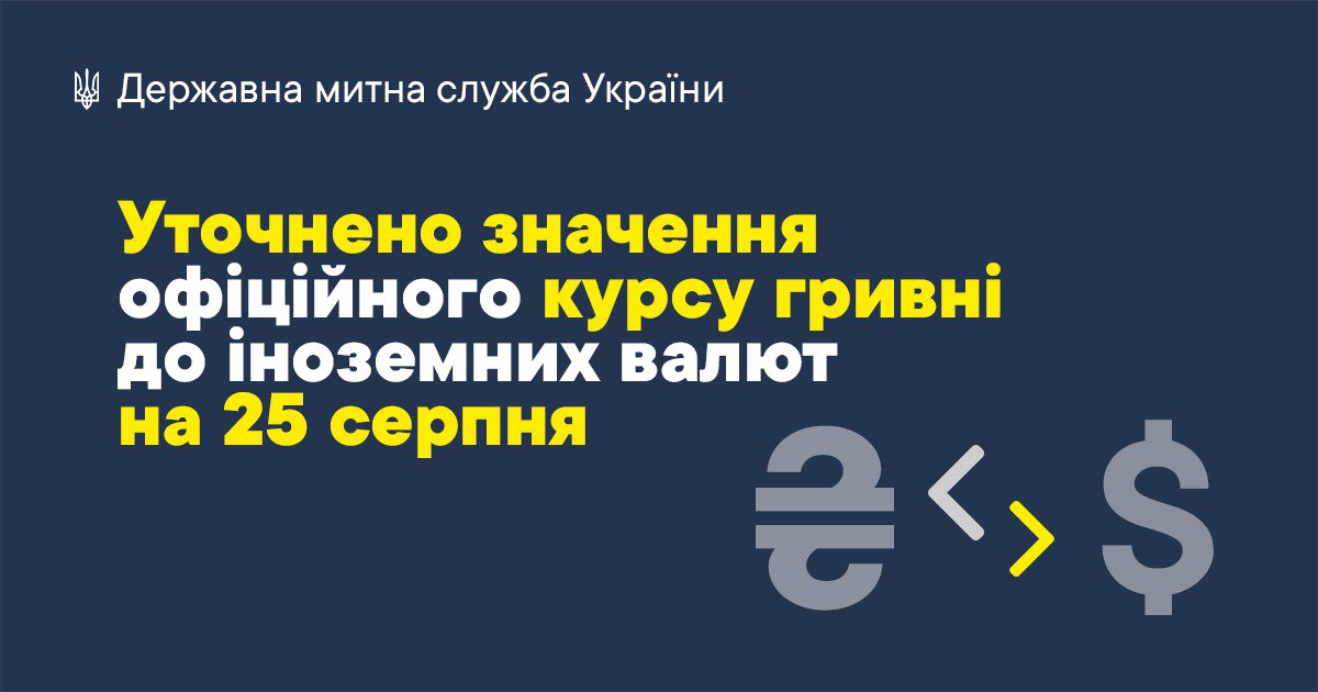 Уточнено значення офіційного курсу гривні до іноземних валют на 25 серпня