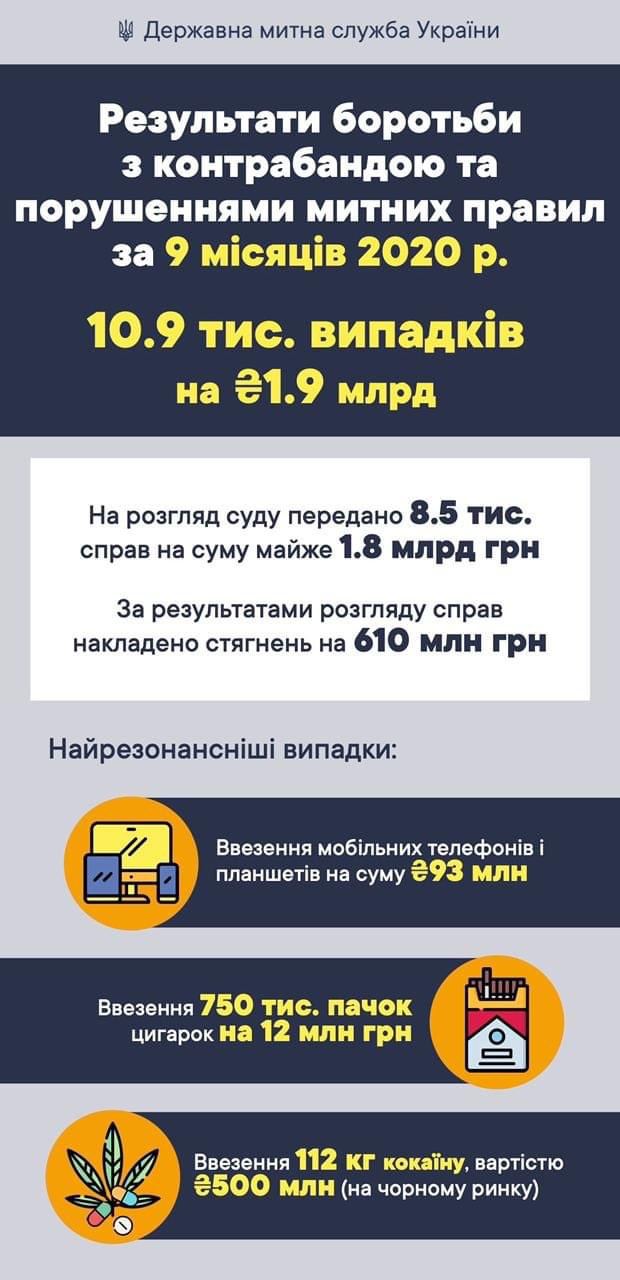 🔥За 9 місяців 2020 р. працівники Держмитслужби виявили порушень митних правил на 1,9 млрд грн