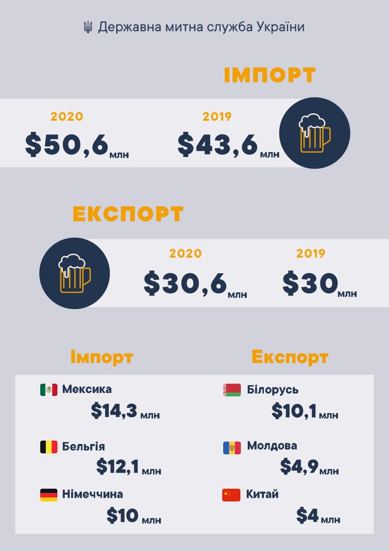 При цьому експорт пива склав $33,6 млн, що на $600 тис. більше, ніж в 2019 році.