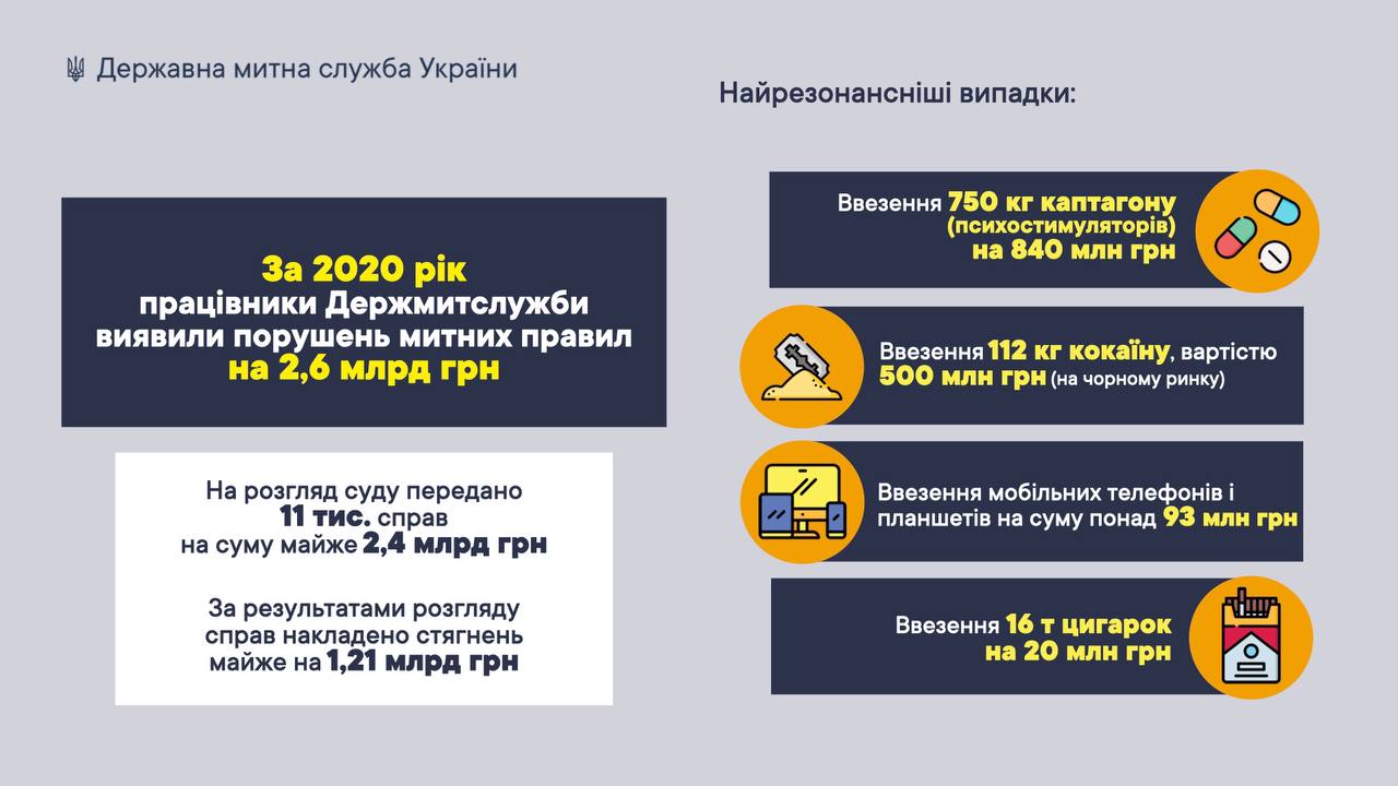 🔥 За 2020 рік працівники Держмитслужби виявили порушень митних правил на 2,6 млрд грн