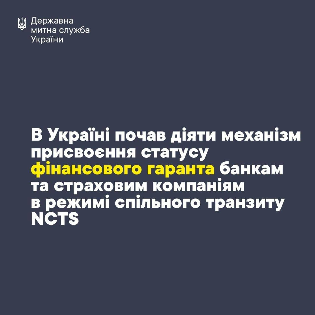 В Україні визначено 📈 алгоритм присвоєння статусу фінансового гаранта в режимі спільного транзиту (NCTS) банкам та страховим компаніям