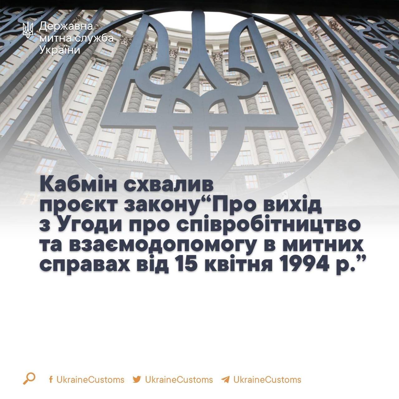 12 квітня Кабінет міністрів ✅схвалив проєкт закону “Пpo вихід з Угоди про співробітництво та взаємодопомогу в митних справах від 15 квітня 1994 року”, який передбачає припинення дії цієї Угоди з країнами СНД (https://bit.ly/3obQSce).