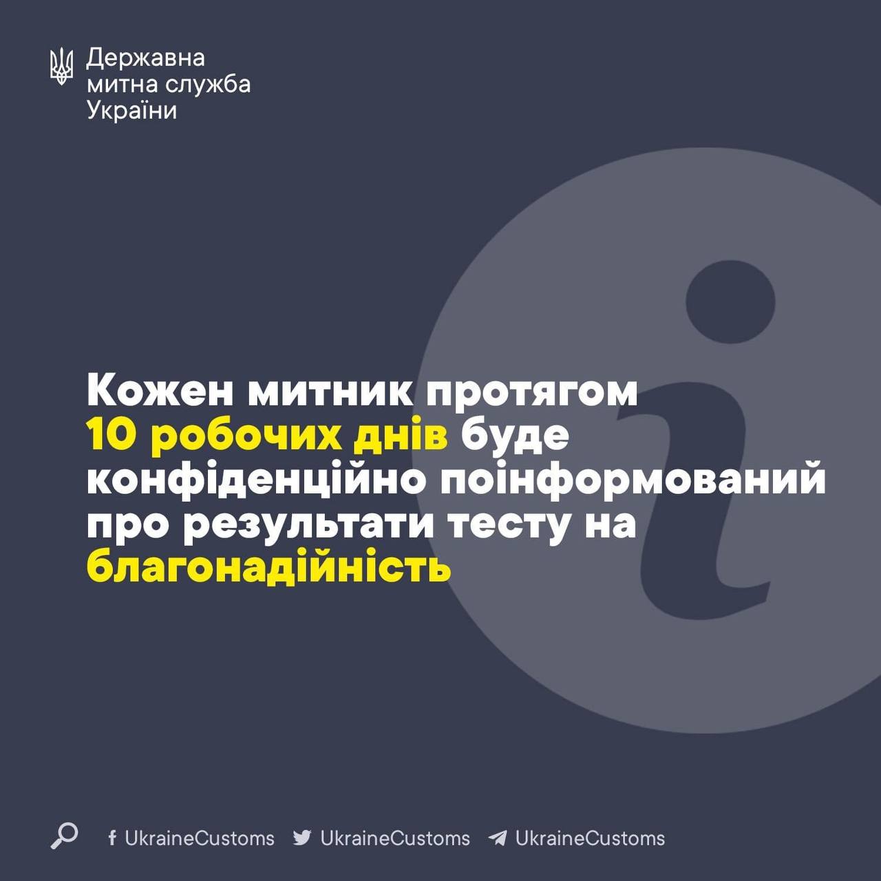 ❗️Кожен митник протягом 10 робочих днів буде конфіденційно поінформований про результати тесту на благонадійність.