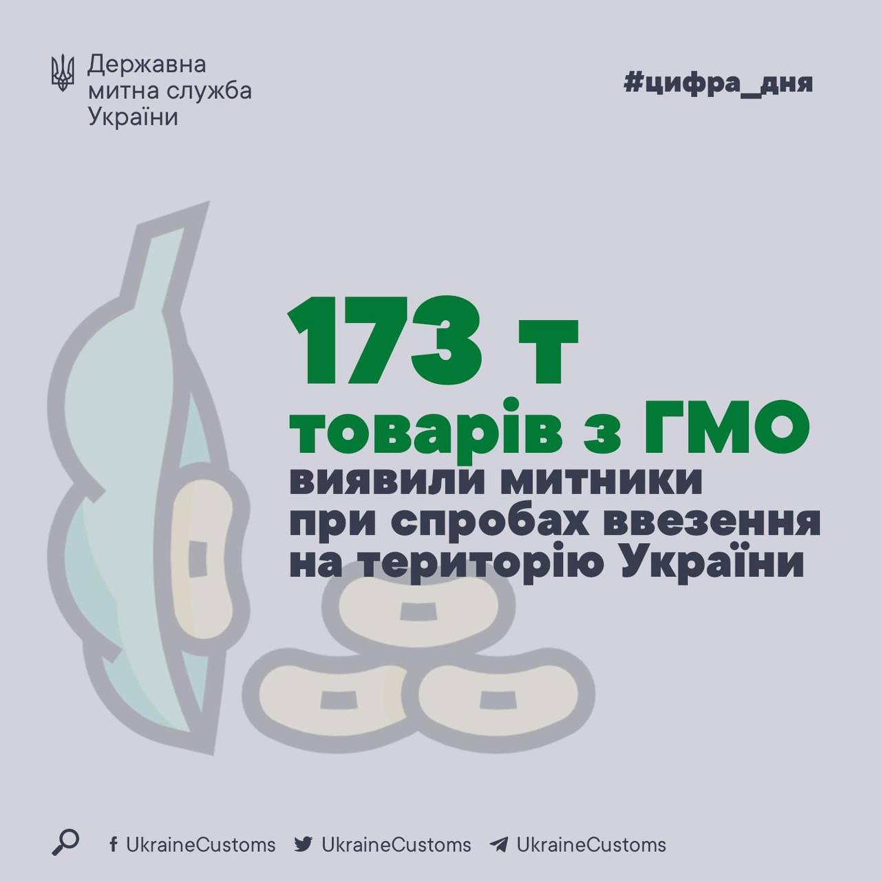 За березень-травень 2021 року Координаційно-моніторинговою митницею Держмитслужби ✅ виявлено три факти переміщення товарів через митний кордон України, де складова частина генетично модифікованих організмів (ГМО) підтверджена лабораторними дослідженнями. Загальна вага товарів становить 173 тонни, вартість їх майже 3,4 млн. грн.