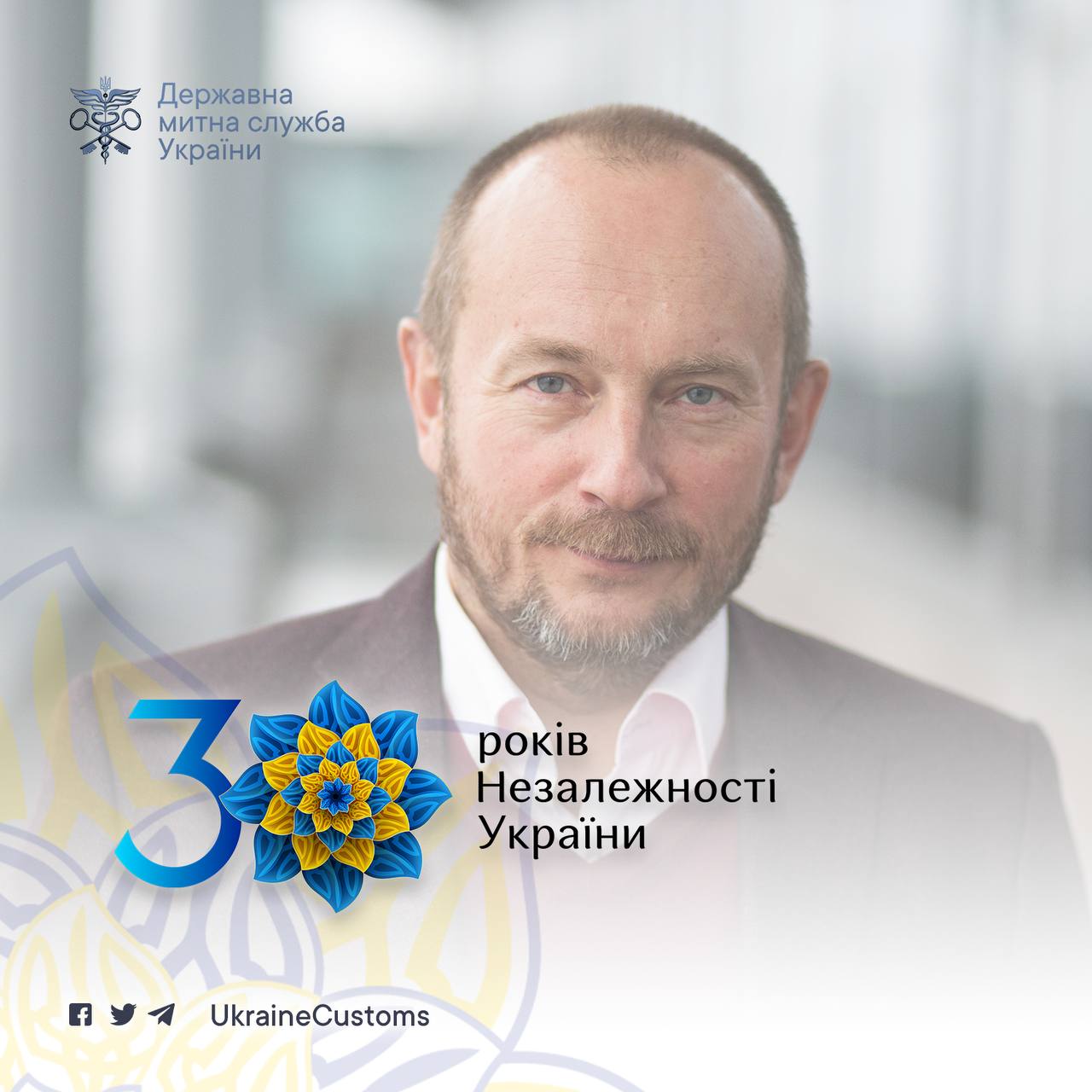 Мої вітання всьому багатотисячному колективу Державної митної служби України, який в непростих умовах пандемії КОВІДу, економічної рецесії, гібридної війни проти України, обмеженого матеріально-технічного забезпечення успішно наповнює державний бюджет України, захищає економічні інтереси Української держави.