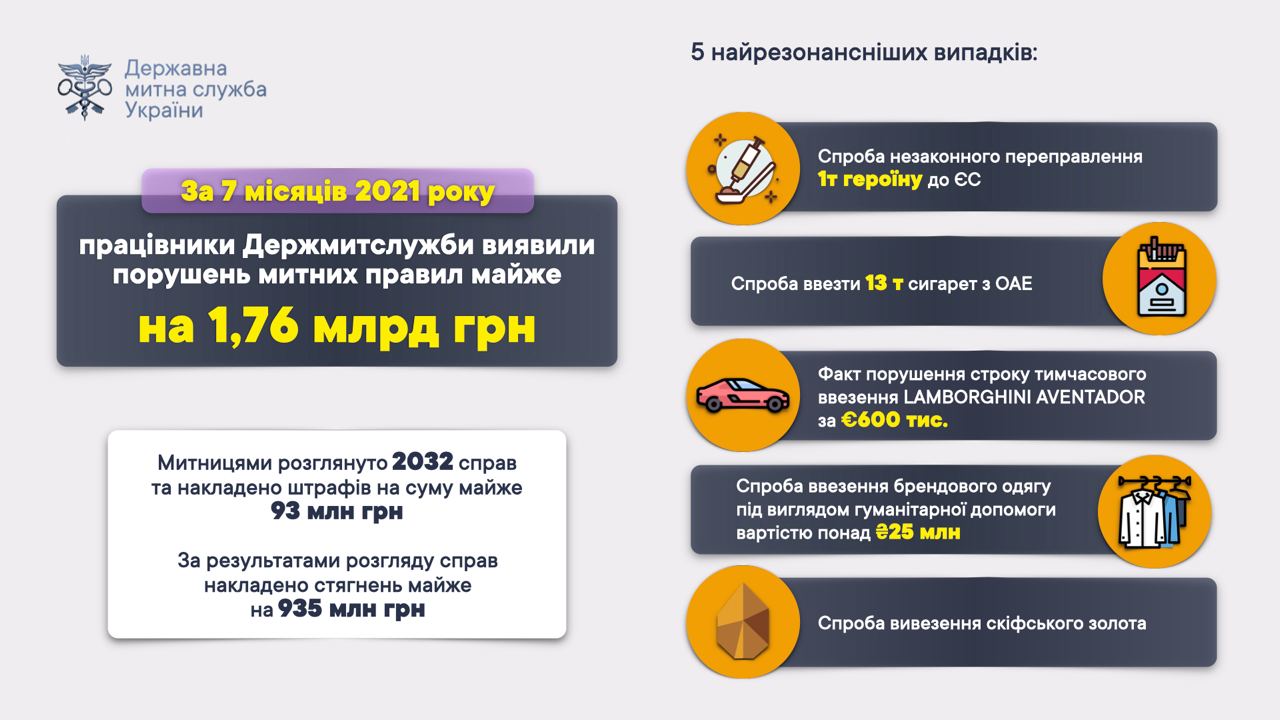 ⚡️За 7 місяців 2021 року митниці Держмитслужби виявили порушень митних правил на суму майже 1,76 млрд грн