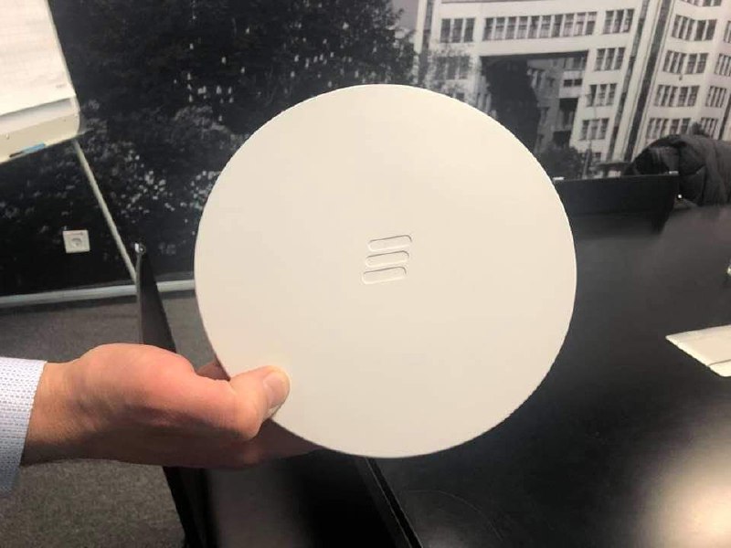 Які ви все-таки у нас розумники! Так, справді – на фото портативна базова станція 5G від Ericsson. Більш того, це не просто БС, а також і антена. Підключивши такий собі "кружечок" вдома до комп'ютерного кабелю, можна мати власний шикарний 5G (ну, й трохи подарувати сусідам)