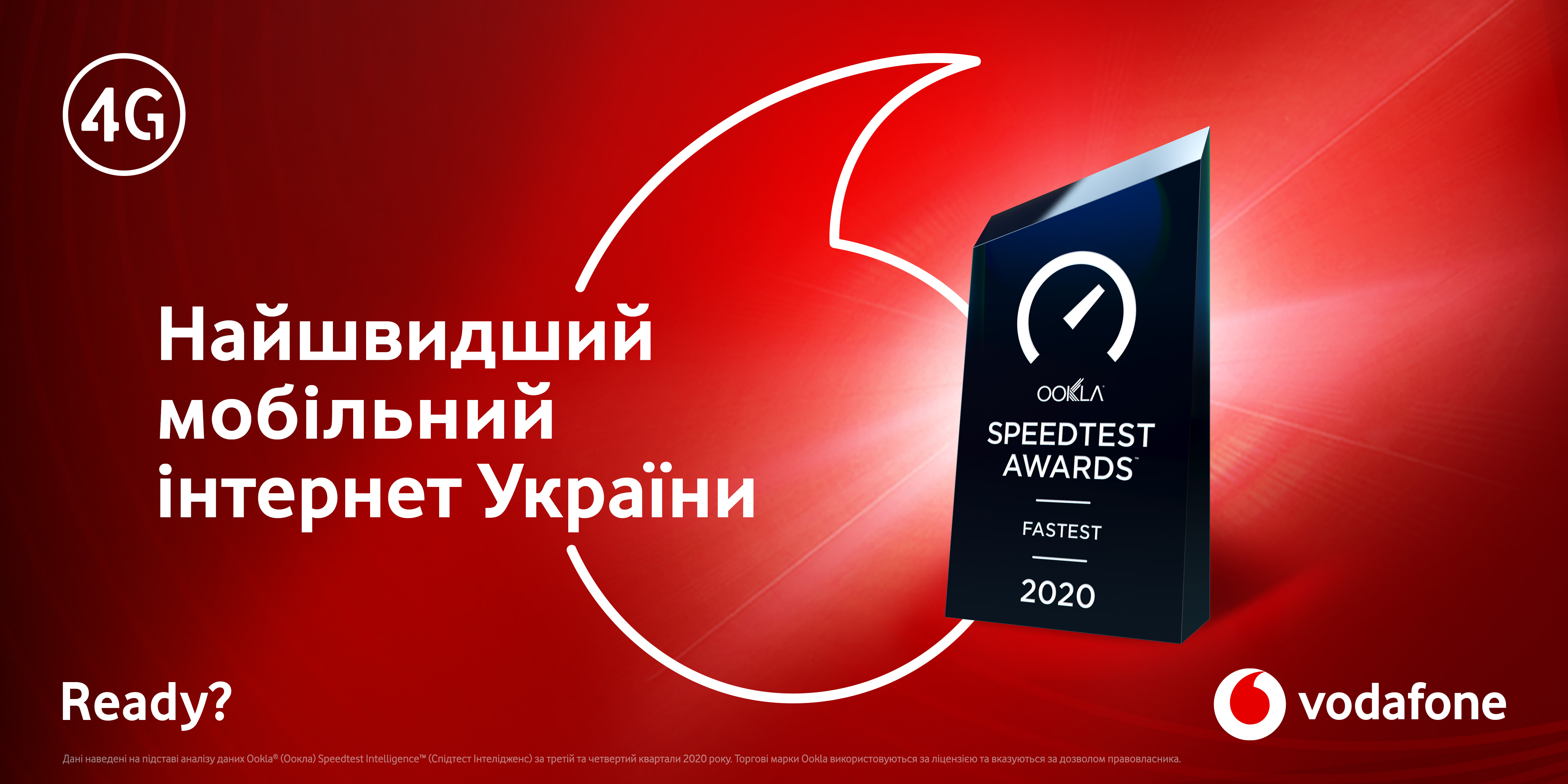 Рейтинг оснований на даних незалежного дослідження Ookla за друге півріччя 2020 року, згідно з яким Vodafone визнаний лідером за швидкістю мобільного інтернету в Україні.
