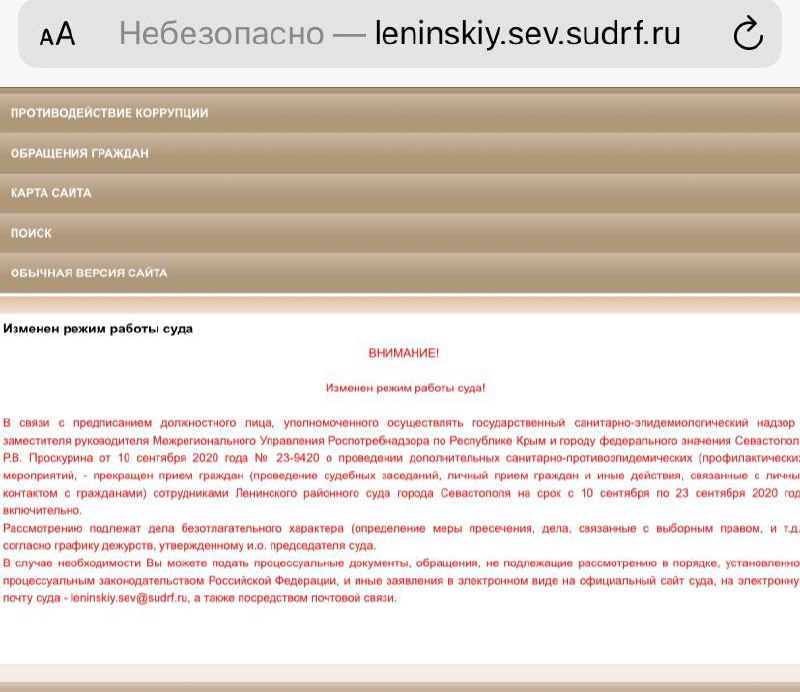 ​​Суд Ленинского района Севастополя до 23 сентября закрыт на карантин по предписанию Роспотребнадзора.