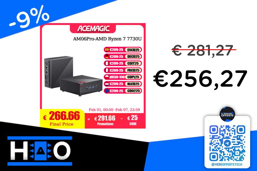 📎 MINIPC Acemagician con Ryzen 77300U da 8core/16Threads, 16GB di ram DDR4 3.200Mhz espandibile, 512GB di SSD sata e IGPU Vega 8 che permette anche di giocare agli esports in 1080p!