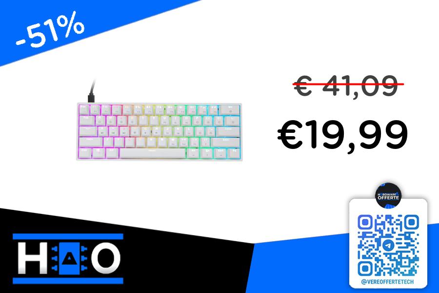 📎 Ottimo prezzo per questa tastiera White da 64 tasti (60%) con switch Gateron ottici Brown(disponibili anche i black). Layout US internazionale, keycaps doubleshot in ABS, illuminazione ARGB.