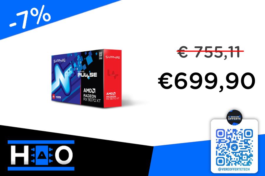 📎 GPU 9070XT 16GB SAPPIGRE PULSE a ottimo prezzo con 4096 Shader units, 256 TUMs e 128 ROPs, 128 Tensor Cores e 64 RT Cores! Rispetto alla vecchia gen. un netto miglioramento lato RT e supporto a FSR4!