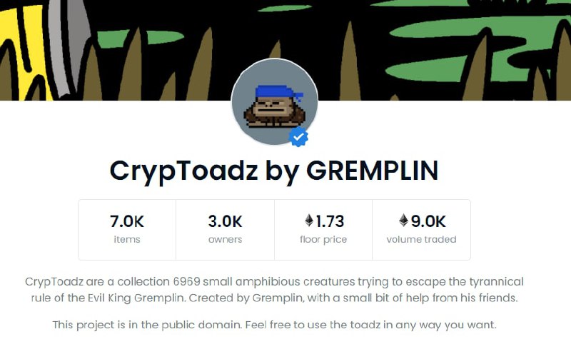 ✅ Помните вчерашний пост про CrypToadz, где упомянул о floor price в 0.69 eth? Так вот, я, конечно, предполагал, что коллекция стрельнёт, но вообще не думал что так быстро! Ночью была небольшая просадка на 0.55 eth на цену входа, но уже на сегодняшний день эта цена выросла более чем на 1 эфир до 1.73 eth минимум за 1 NFT.