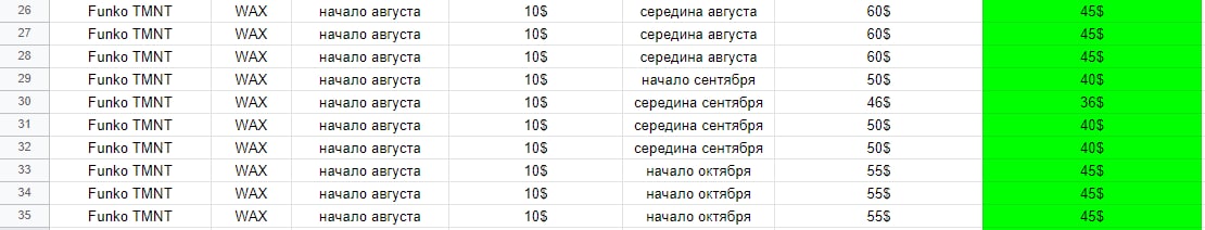 ➕Ещё в начале августа делал пост о сейле Funko 'TMNT'. Поскольку это был их первый подобный дроп на AtomicHub с паками по 9.99$ - они разошлись очень хорошо и планку в 50-60$ стабильно держали по сегодняшний день.