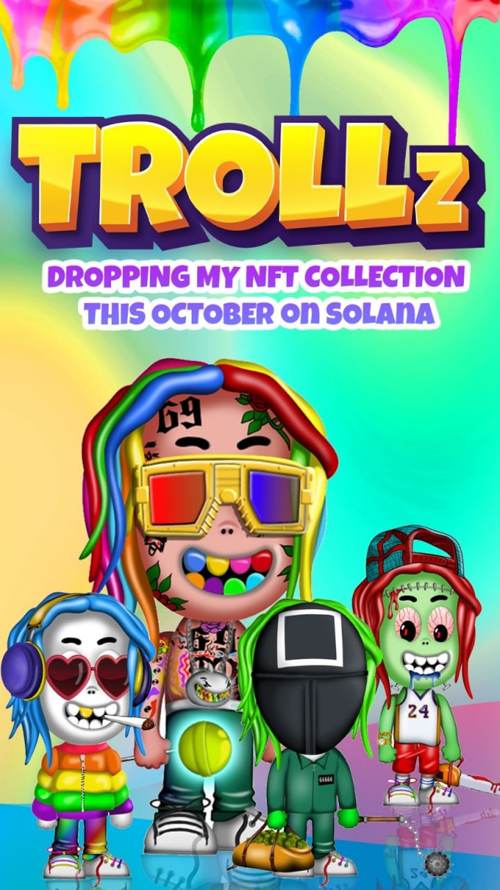 ➕9,669 NFTs генеративных троллей от самого артиста 6ix9ine. Рисунки не самые что ни на есть оригинальные, сами понимаете, что тут в первую очередь идёт привязка к личному бренду и лишь в конце очереди все будут обращать внимание на качество исполнения самих артов.
