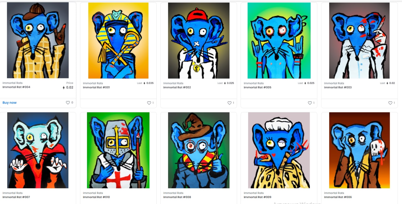 ➕ В нашем крайнем выпуске на канале NFT Field мы выбрали одного кастомного художника под псевдонимом SetPaints, потому что увидили в нём действительно большой, но ещё нераскрытый потенциал. Его работы - это гибрид физических артов и digital-пространства. Сама NFT коллекция на OpenSea называется 'Immortal Rats' и будет состоять из 500 кастомных токенов вручную нарисованных бессмертных крыс.