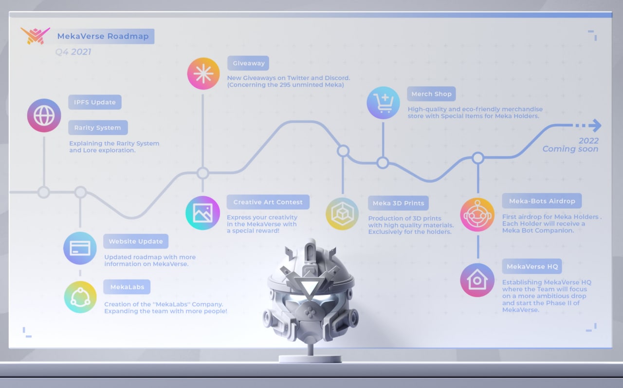 Команда разработчиков MekaVerse обновили свою roadmap и в скором времени каждый холдер сможет склеймить себе бота-компаньона 1 к 1 совершенно бесплатно (не считая gas fee)!