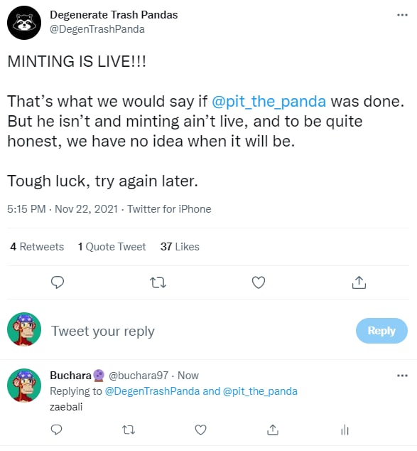 ⚡️Degen Trash Pandas наконец дали добро на минт NFTs, если у вас имеются крышечки, о которых рассказывали ранее.