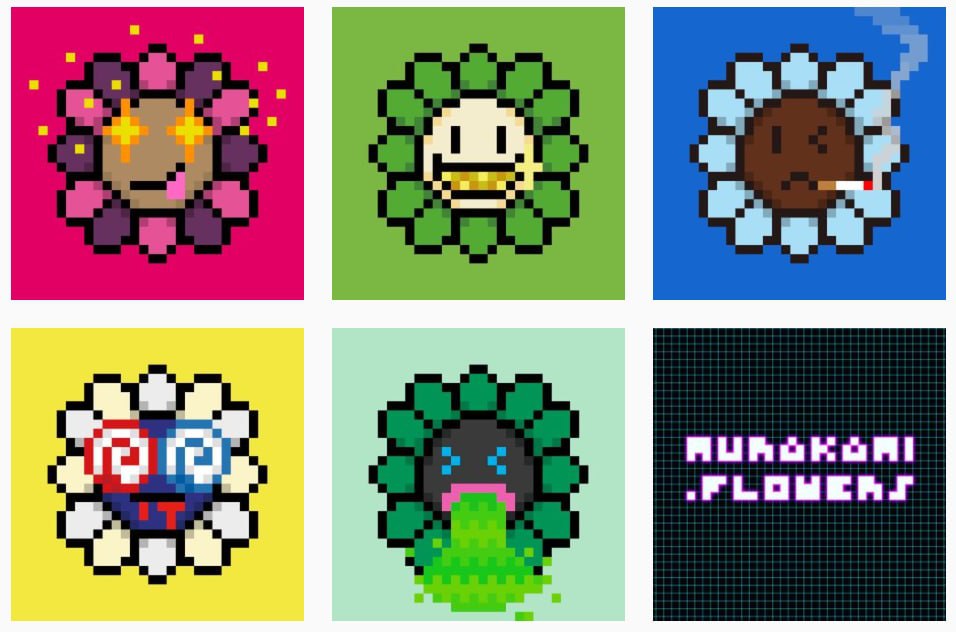 ➕ Murakami Flowers - это коллекция пиксельных цветочков на 11,664 NFTs, которые выполнены в стилистике ретро-телевизионных передач Японии 70х годов.