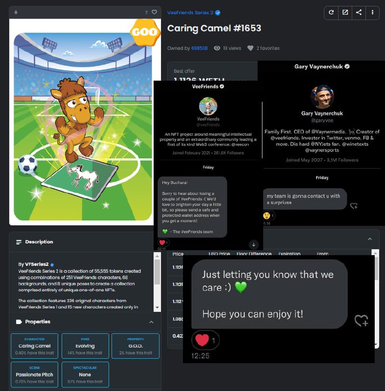 Когда скам произошёл, я потерял парочку дорогих мне VeeFriends Series 2, которые отставил на долгое хранение и даже не думал продавать, и Гэри написал что его команда готовит мне какой-то сюрприз. Было крайне волнительно и интригующе! Ведь самим сюрпризом для меня стало вообще то, что он в принципе написал мне! А это многого стоит, чтобы вправить свою менталочку.
