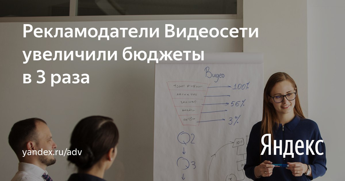 Рекламу в Видеосети Яндекса видят 37 миллионов россиян ежемесячно. В этом году количество рекламодателей, использующих видеоформаты для продвижения в сети Яндекса, увеличилось на 79%, а расходы на видеорекламу выросли в 3 раза.