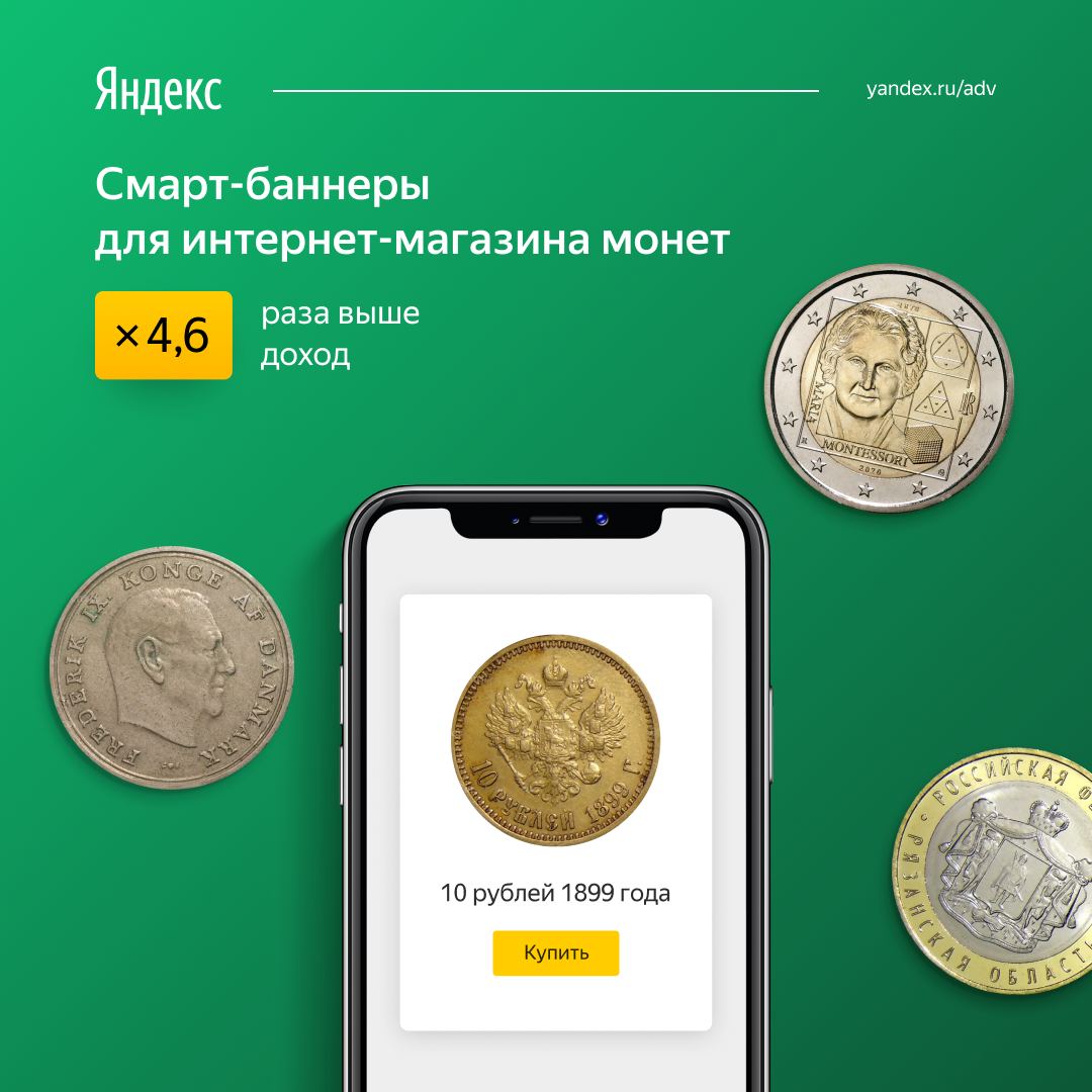 #нужнобольшекейсов как повысить отдачу от смарт-баннеров. Интернет-магазин монет и банкнот перевел смарт-баннеры на стратегию «Оптимизация рентабельности» — и доход за полгода увеличился в 4,6 раза по сравнению аналогичным периодом 2019 года.