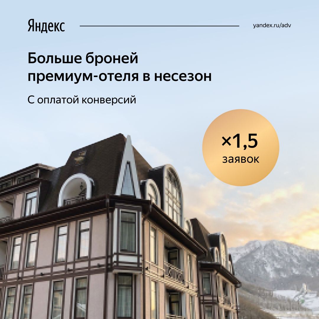 Осень, высокая конкуренция и неопределенность в туристической отрасли не помешали отельной сети Grace Group в Красной поляне привлечь в 1,5 раза больше бронирований из Рекламной сети Яндекса — при том же бюджете. Помог перевод на оплату конверсий. Удачный опыт уже перенесли на кампании других объектов и направлений. А в высокий сезон, который уже близко, накопленная статистика позволит быстро стартовать и привлечь в отели ещё больше гостей.