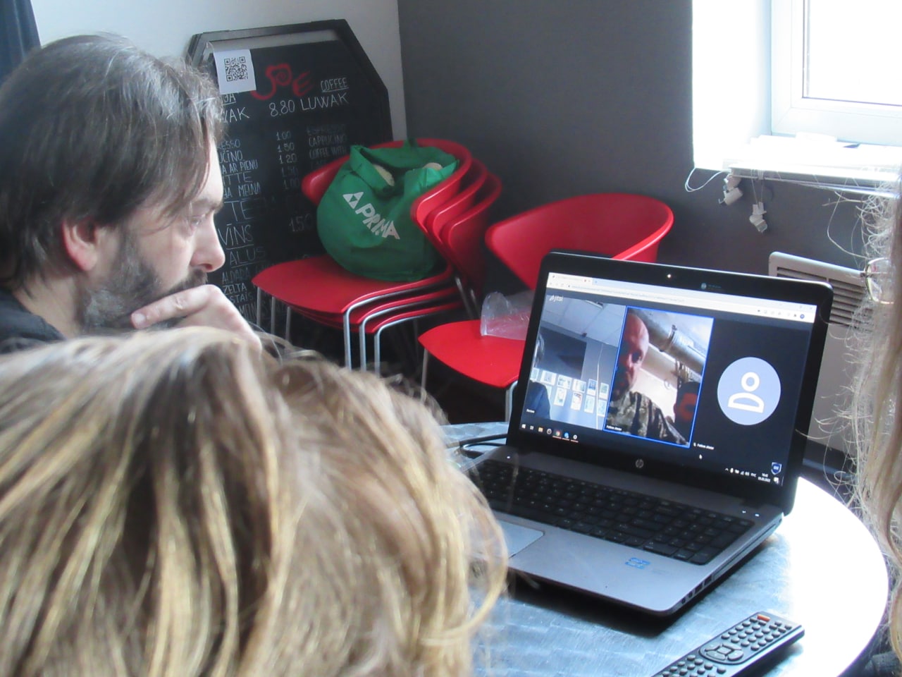 Нам удалось связаться по видеосвязи с анархистами Украины. Первая беседа была с участниками группы Черный Стяг. Они приехали в Киев, чтобы участвовать в защите города в составе территориальной обороны. Во время разговора с нами они занимались делом – оборудовали подвал здания под убежище для гражданских.