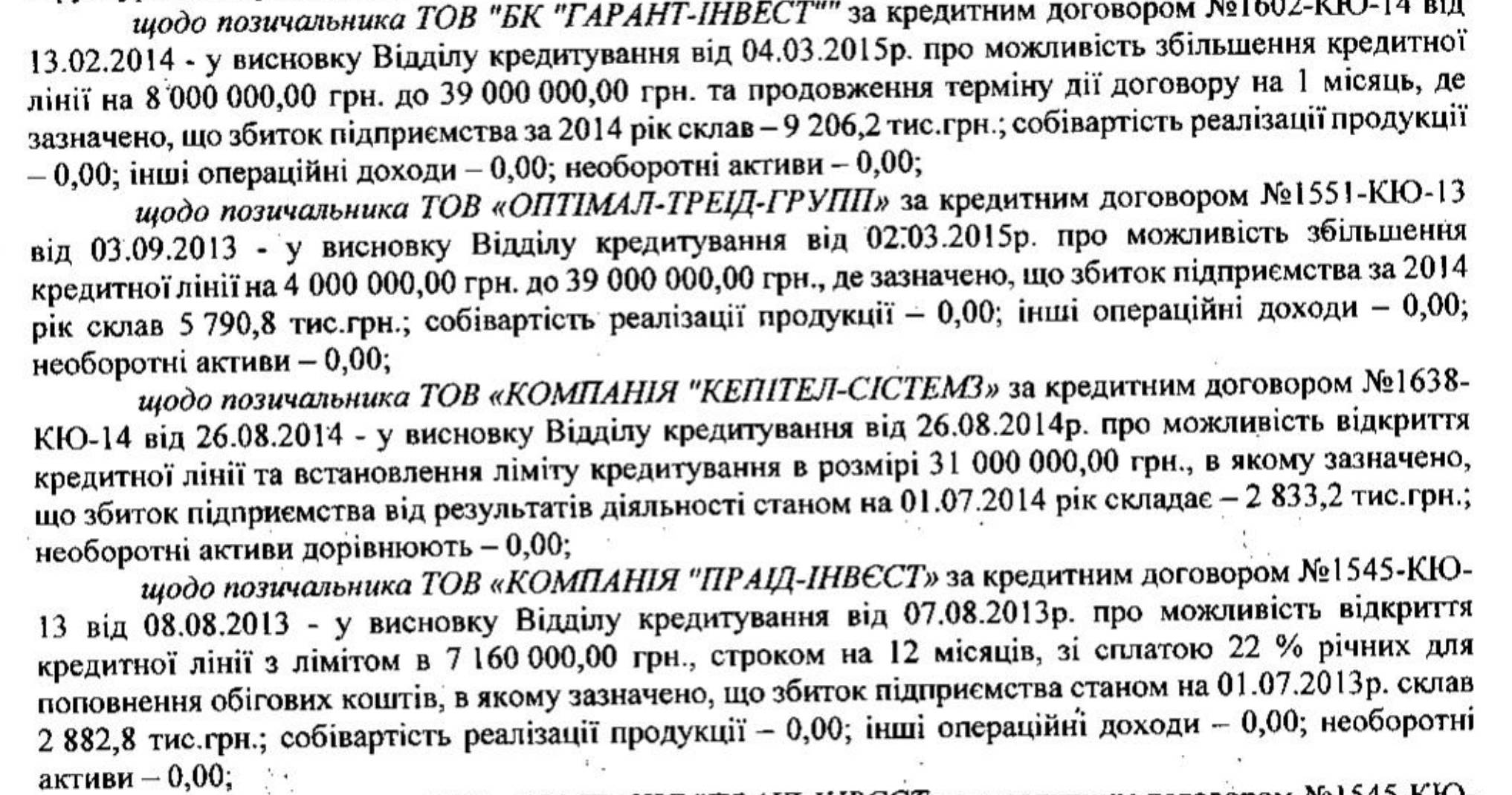 🏦 У чому ж полягала суть цієї схеми? Всі кредитні лінії відкривалися під заставу недержавних цінних паперів, а саме наступних ПАТ: «Актив трейд», «Сіам капітал», «Профінанс», «Великополовецьке РТП». Також заставою були інвестиційні сертифікати «КУА Сіті ессет менеджмент»