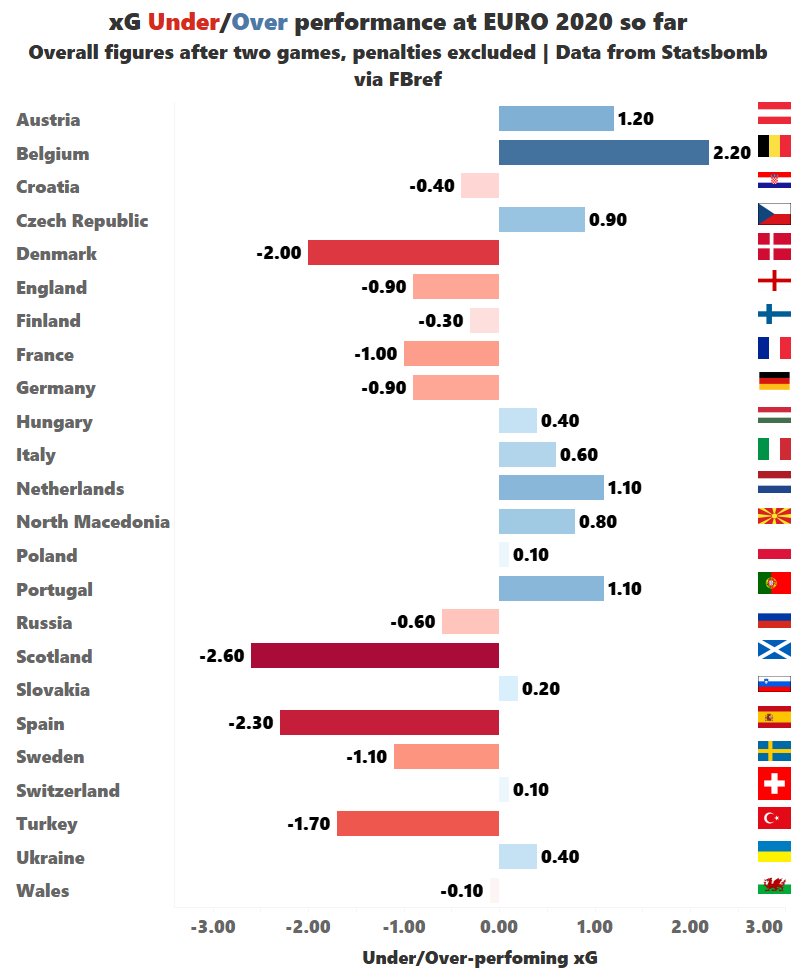 По NPxG лучшими стали Португалия (1,9), Испания (1,8) и Шотландия (1,8).