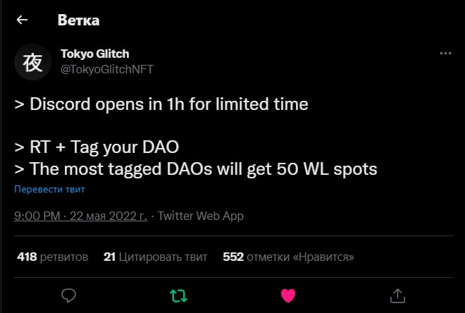 - Заходим в их твиттер и включаем уведомления сегодня в 21:00 МСК они выложат ссылку на ограниченное время, потом аккаунты можно будет продать за 5$ или же выбивать WL.