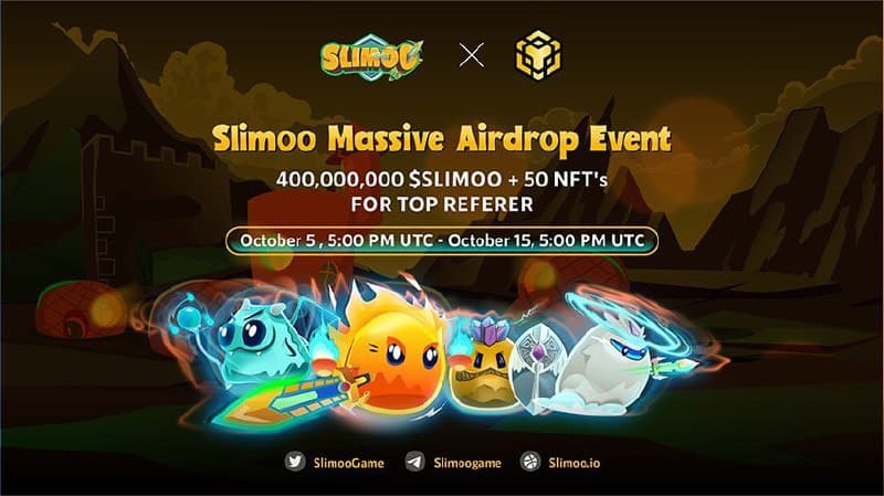 📄 Очередная игрушка, но выглядит хорошо. Принять участие можно, точное количество победителей я не нашел, но выигрышный пул большой. Пул вознаграждений - 400,000,000 Slimoo Token, топ 50 рефоводов еще получат по NFT.