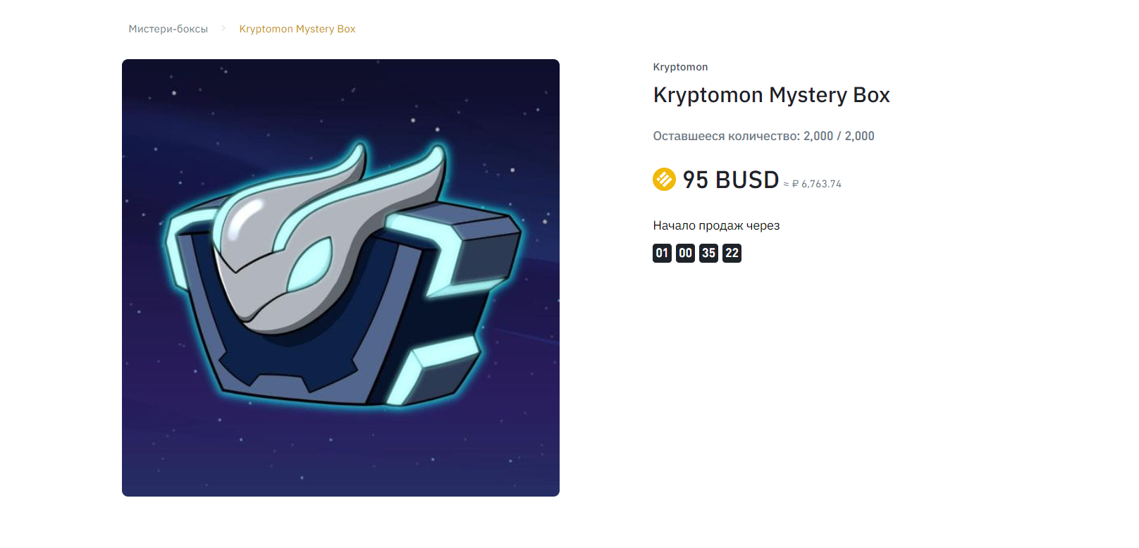 Продажа NFT Kryptomon Mystery Box на Binance🍌