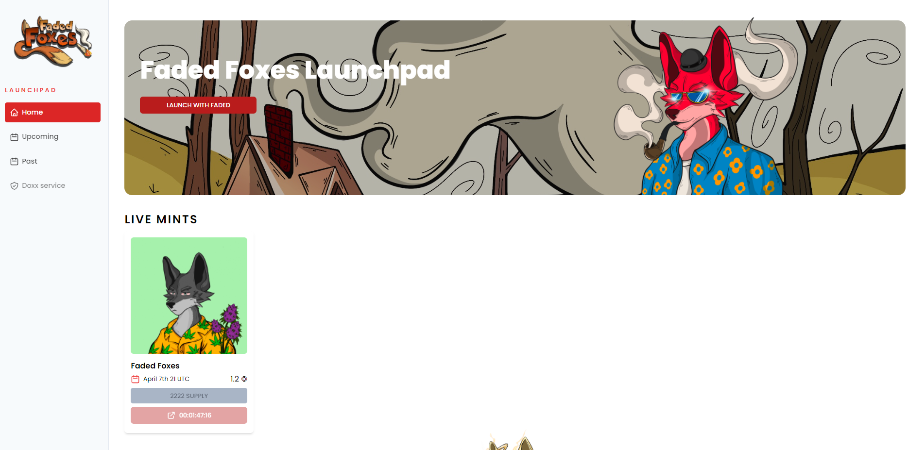 Faded Foxes — Наша панель запуска позволит проектам беспрепятственно создавать свою коллекцию NFT. Мы стремимся предоставить безупречный опыт, как никто другой, на Солане со строгими мерами по борьбе с ботами, а также услугой аудита для каждого проекта, который хочет запустить с помощью нашей панели запуска NFT.
