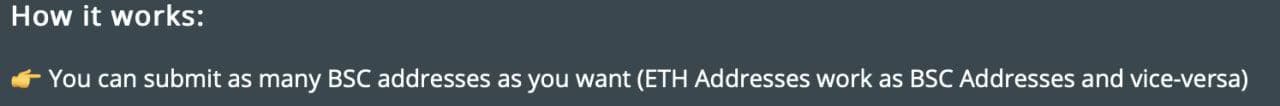 Форма для дропа, нужен только BSC адрес, подойдет любой ETH адрес из метамаск https://bsc.minereum.com/airdrop/
