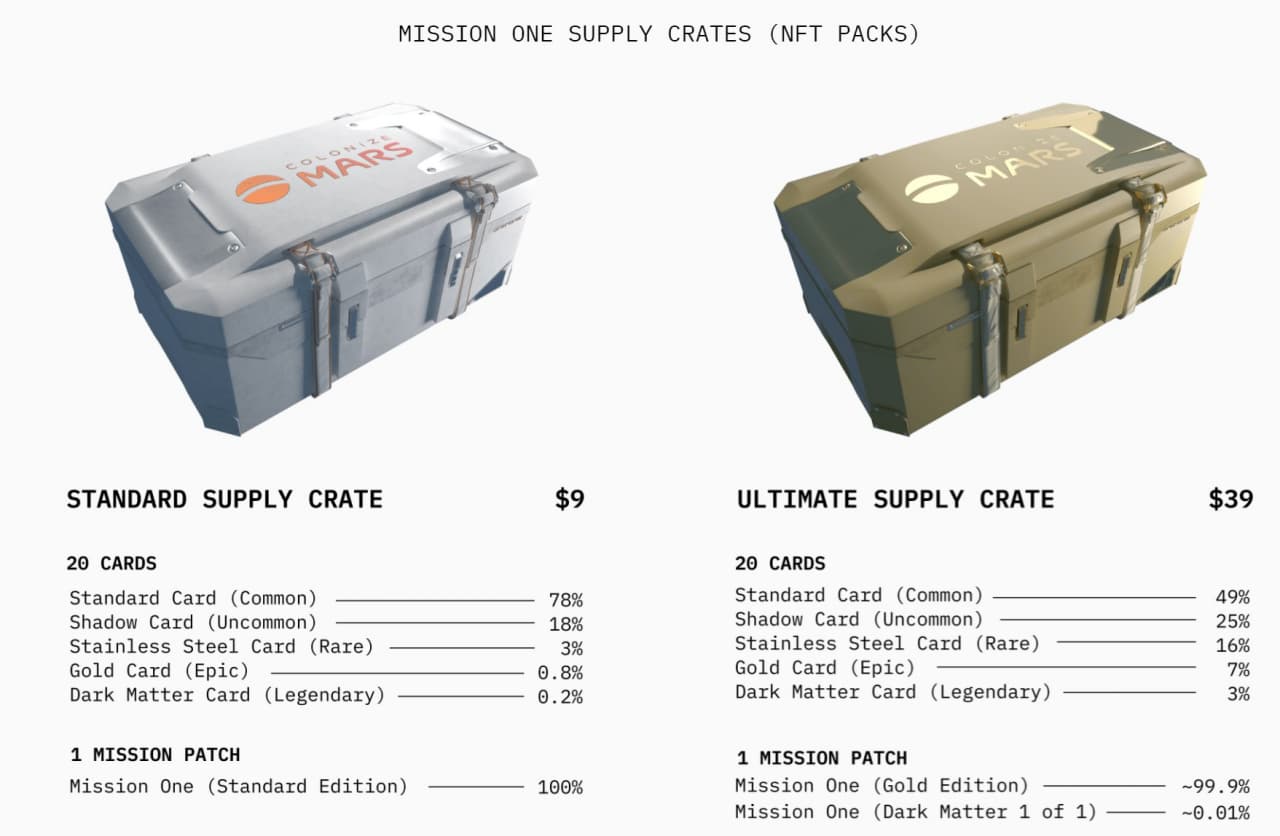 Colonize Mars - это коллекция NFT карточек, которая рассказывает историю развития симулированной колонии для Марса.