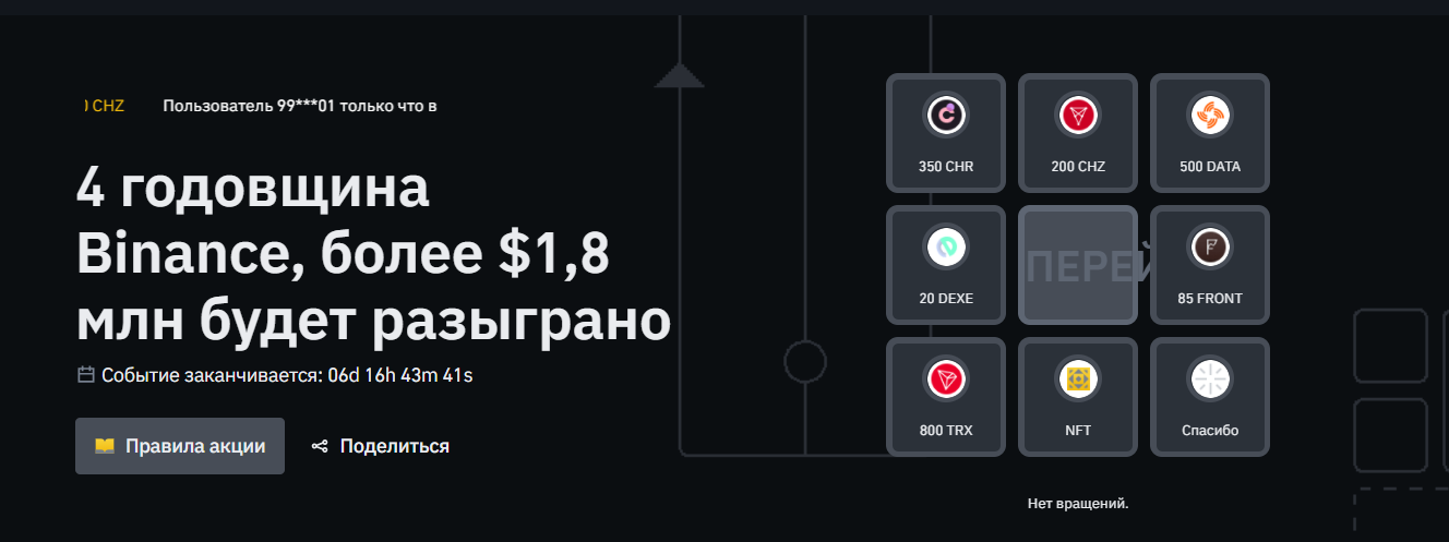 В честь своей предстоящей годовщины Binance проводит промоакцию с общим призовым фондом в 1.8млн$ и 1050 лимитированных NFT😍