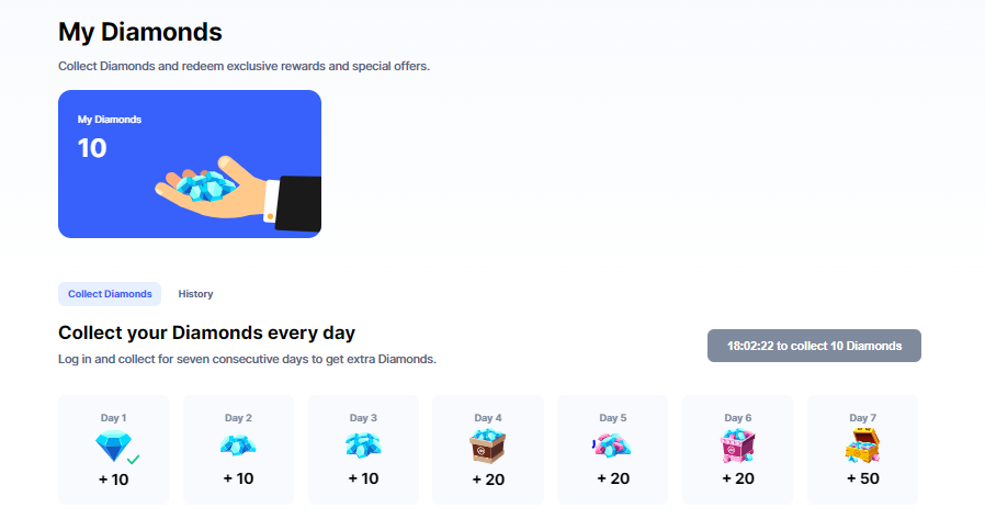 • Каждый день собирайте бриллианты на странице My Diamonds