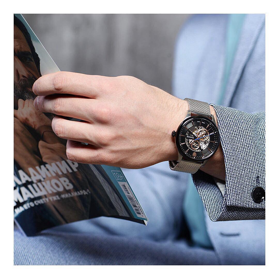 Эффектный дизайн мужских швейцарских часов Wainer позволяет воочию наблюдать за тем, как “время движется вперед”!