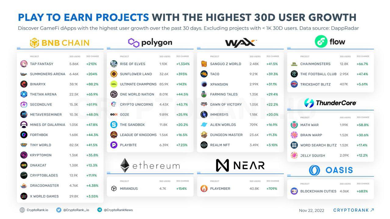 В p2e наблюдается прирост пользователей за последние 30 дней.