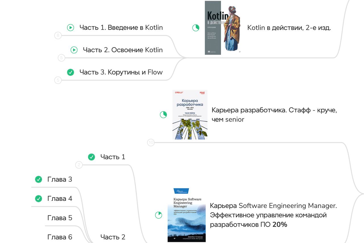Пару слов, о том, как я веду список. В Xmind я создал mindmap из списка книг, которые хотел бы прочитать. Для каждой книги создается отдельный план по главам. В процессе отмечаю какую главу прочитал и где остановился. Ставлю пометку Сделано напротив - это добавляет удовлетворения от выполнения небольшой задачки. Плюс всегда можно вспомнить на какой главе остановился. Легко и просто. А вы составили список книг на лето? Делитесь полезными книгами для разработчика