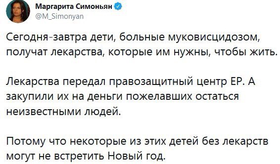 ​​Британская компания бесплатно передаст 30 тысяч упаковок лекарства для больных муковисцидозом в России. Мне кажется это все что надо знать о правозащитной деятельности Единой России.
