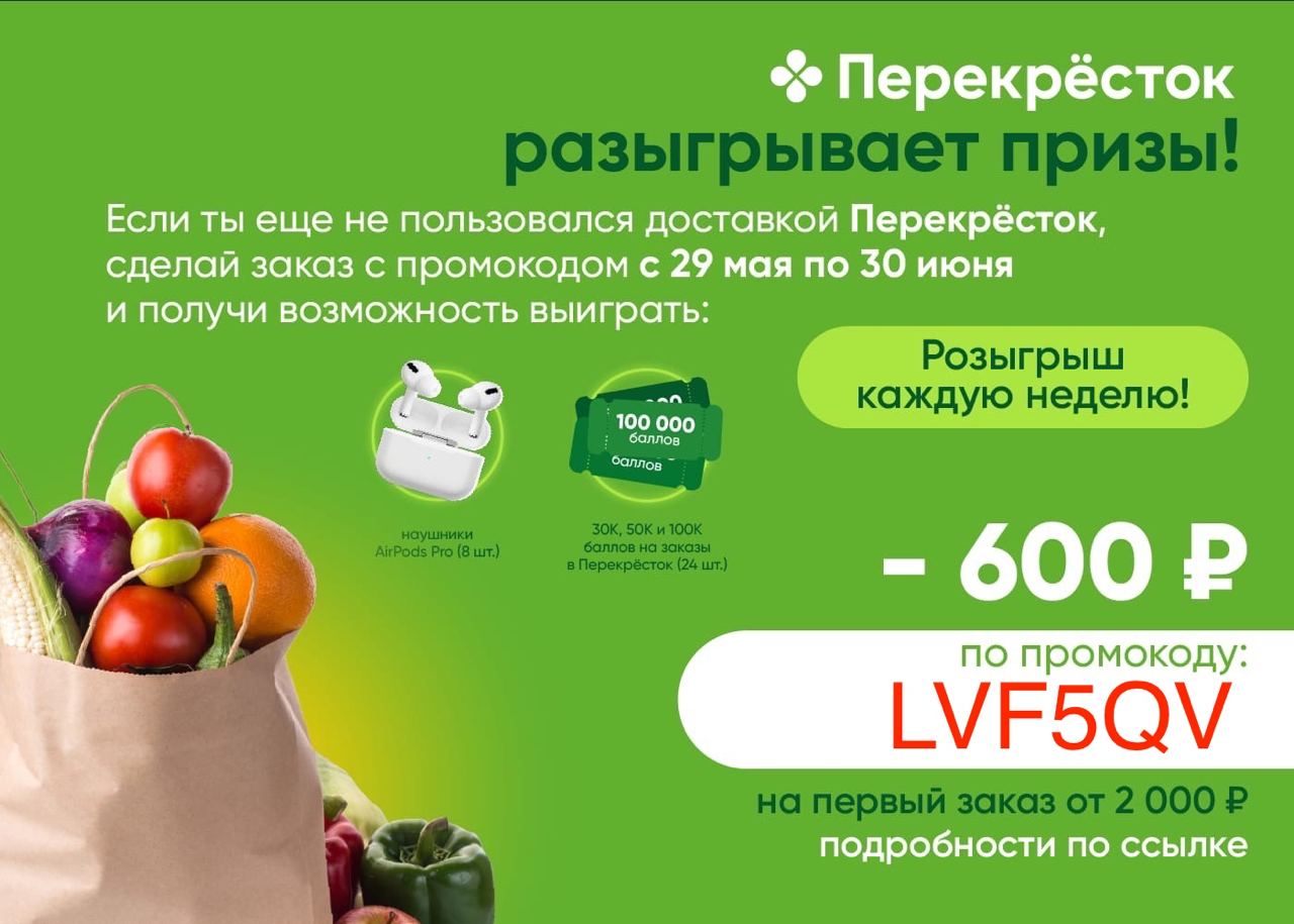 - оформить свой первый заказ в Перекрёсток с одним из промокодов выше с 29 мая по 30 июня и ждать розыгрыша призов.