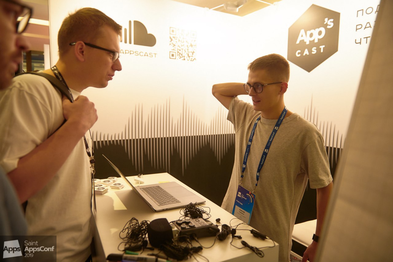 ⚫️Saint AppsConf – это множество активностей и возможностей для нетворкинга. На стенде AppsCast – подкаст о мобильной разработке и обо всём, что с ней связано, сегодня два квиза: в 12:30 и в 16:50. – Вы можете выиграть фирменные футболки и, конечно, заработать AppsCoins.