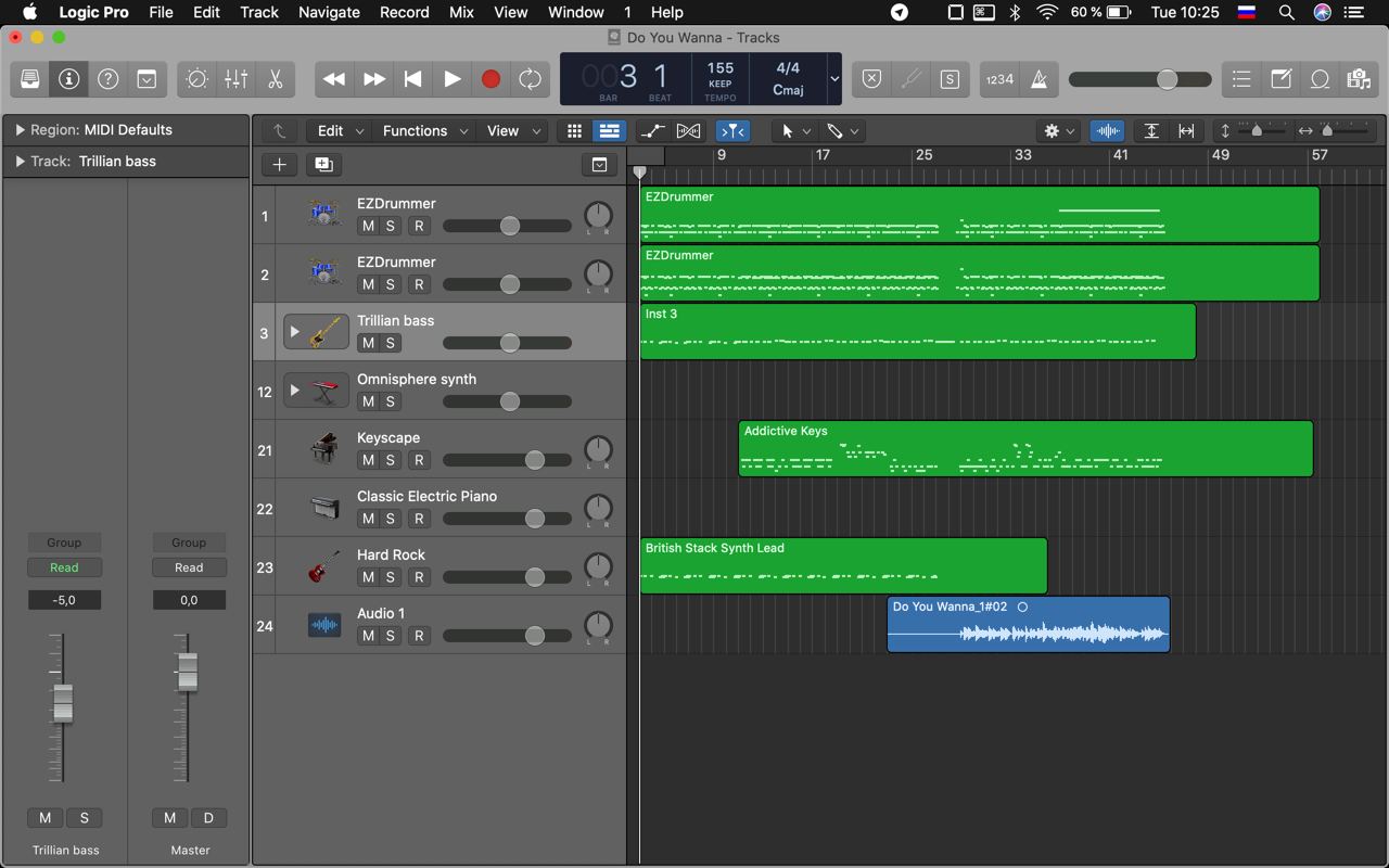 3) Чистовые ритм партии и вокал уже можно писать большими кусками. Чаще всего я дроблю куплет/припев на логичные моменты, где есть стоптайм или место вдоха, чтобы именно оттуда начать записывать. Но помни, что если с электро инструментами это сработает, а с акустическими сработает частично, то вокал может очень сильно поменяться по тембру, динамике и энергетике. Так что именно вокал нужно дробить меньше всего, чтобы сохранить приемственность кусков.