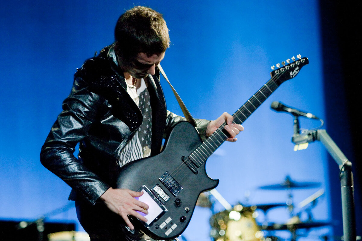 Особенность этой гитары — midi тачпад, который может подключаться к компьютеру, синтезатору или даже управлять светом на сцене! Учитывая, что Muse поют о космосе, астрономии и науке вообще, то и оборудование у них тоже напичканное сверх-современными штуками.
