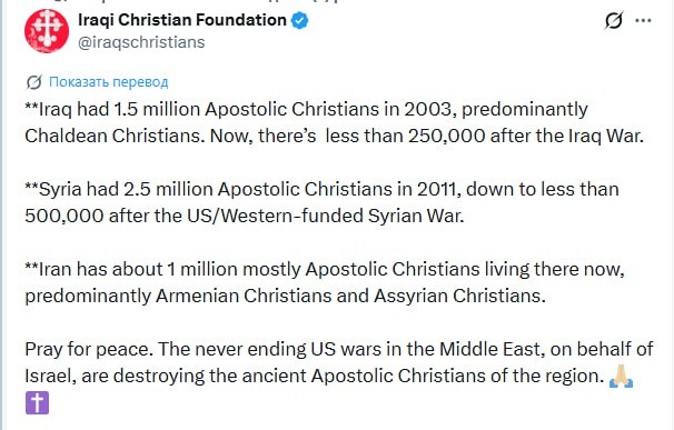 Бесконечные войны США на Ближнем Востоке, ведущиеся в интересах Израиля, разрушают древние апостольские христианские общины региона.