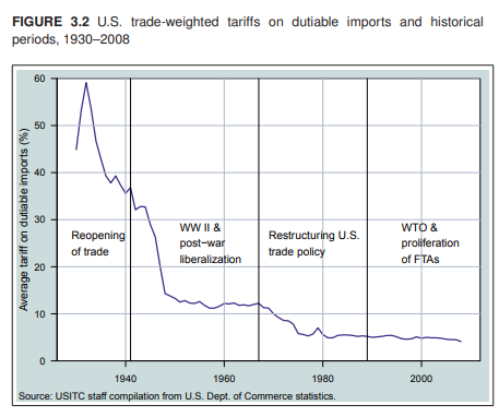 Как пример к 1830-м годам в США были самые высокие таможенные пошлины на промышленные товары в мире (как видно из графика в конце поста). По сравнению с ними недавние тарифы Трампа на сталь (25%) и алюминий (10%) - цветочки. Этот статус страна удерживала до начала Второй мировой войны.