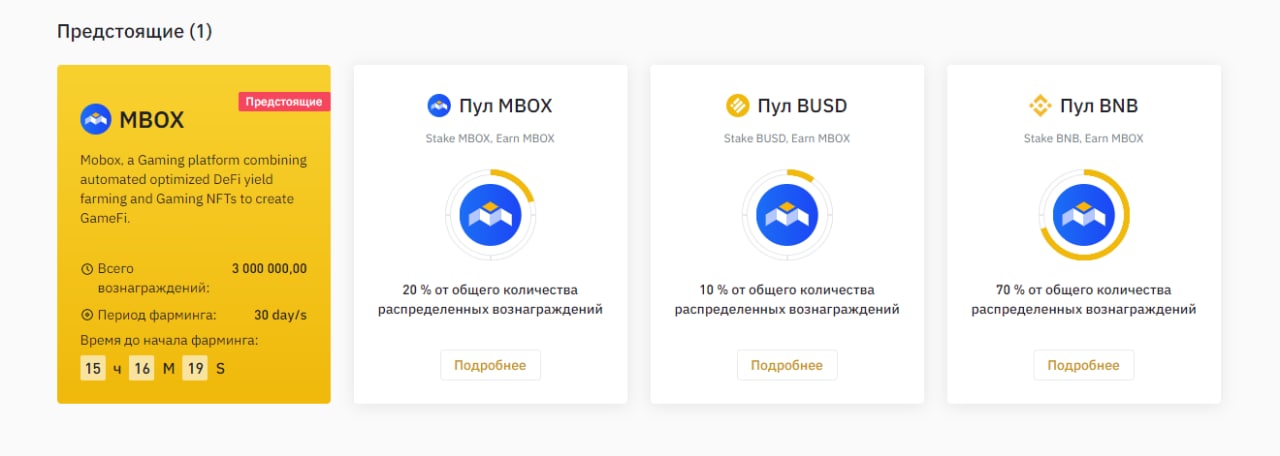Можно стейкать #MBOX, #BUSD и #BNB и зарабатывать #MBOX