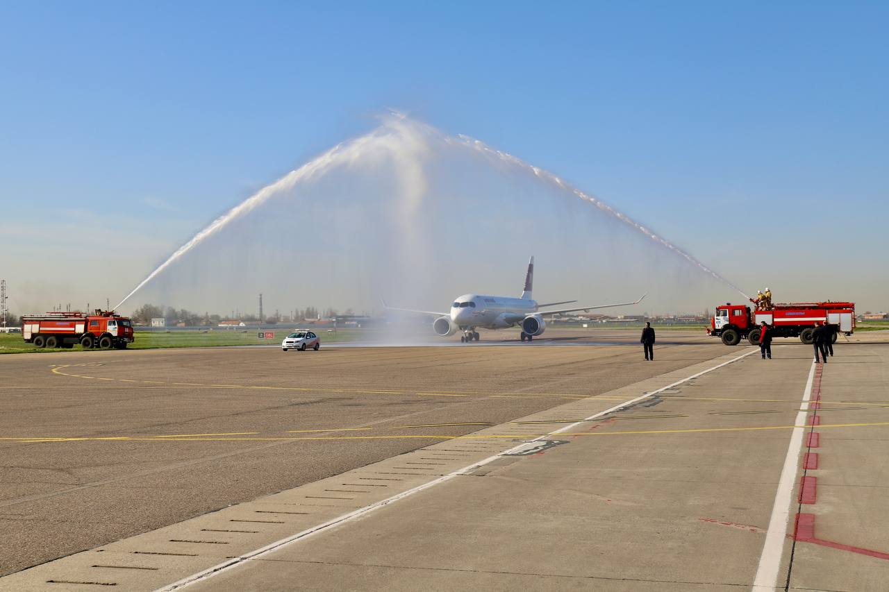 4 марта в 10:05 по местному времени в аэропорту Ташкента приземлился самолет авиакомпании Air Manas. По традиции воздушное судно торжественно встретили водной аркой. Спустя час – в 11:15 рейс вылетел по маршруту Ташкент – Бишкек с 144 пассажирами на борту.